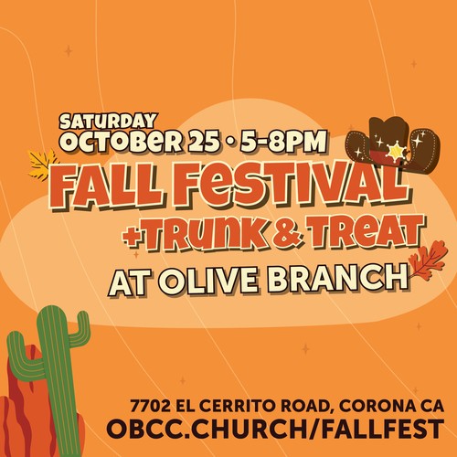 It’s time for our annual Family Fall Festival! Bring the family for a fun and safe trunk or treat with food, candy, jumpers, and so much more.