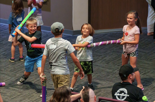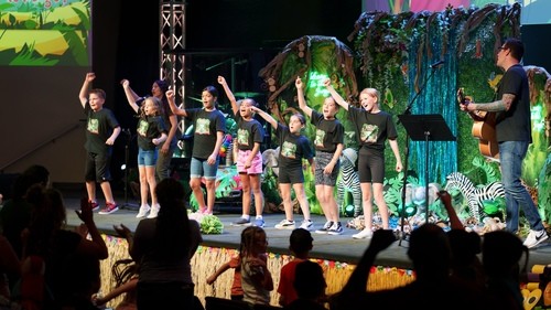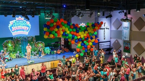 What is Family Fun Week or Family VBS? A themed FAMILY experience that includes dinner, play and worship TOGETHER before engaging kids' program and powerful adult speakers.
