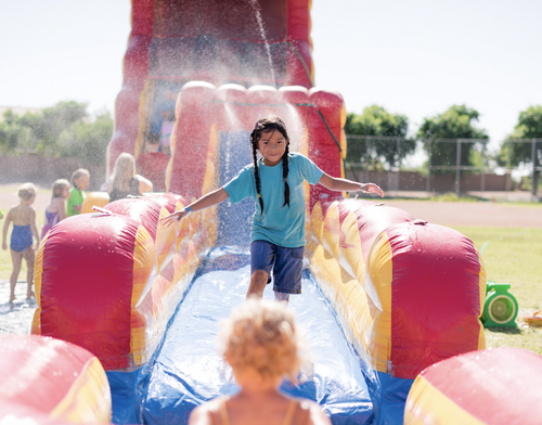 You’re invited to Water Weekend. Water slides, nachos and freeze pops on the courtyard. Bring a towel!